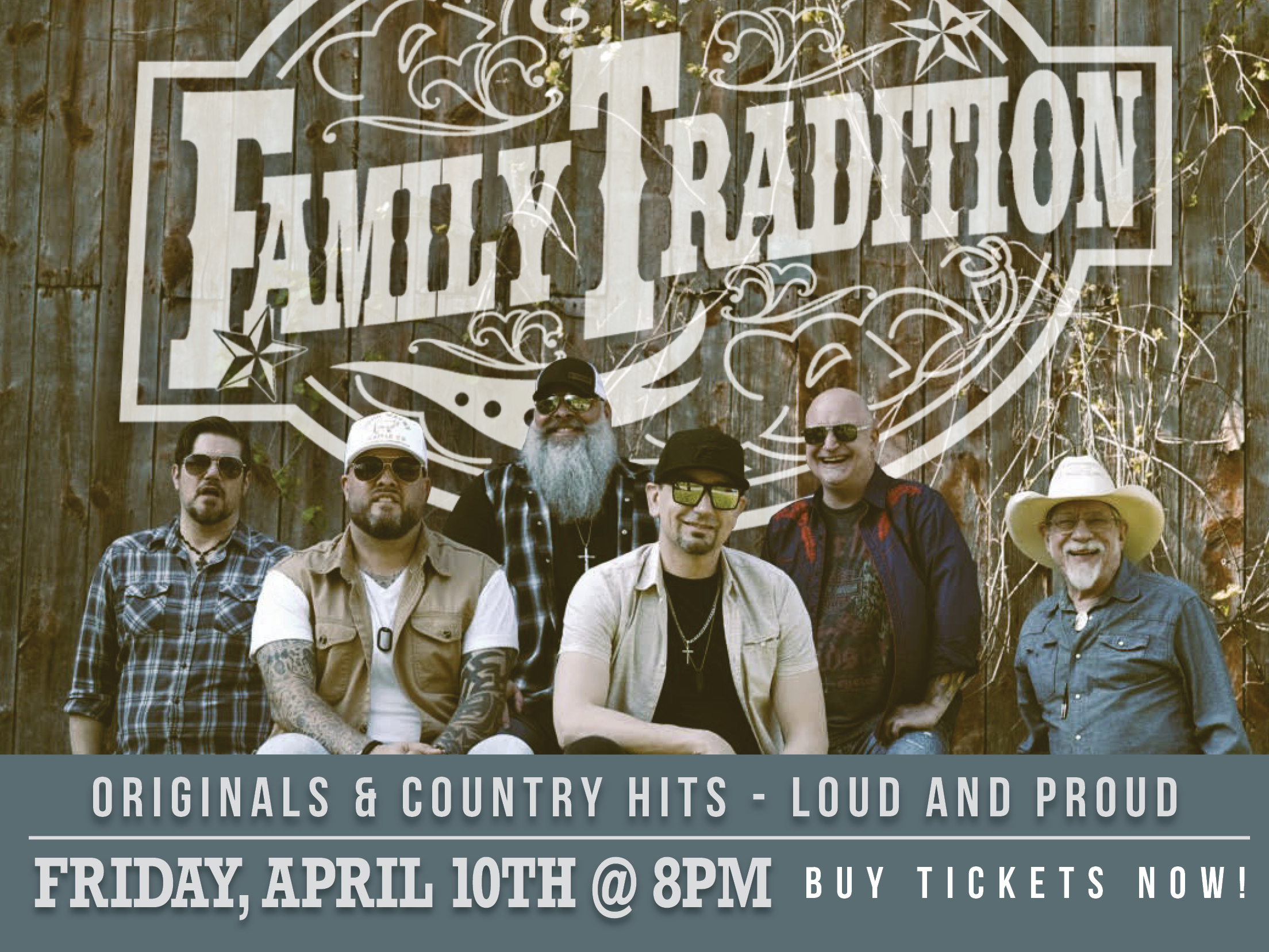 Family Tradition is no Hank Williams Jr. Tribute Band, but they sure like to pay tribute to an era that created the honky-tonk party anthems of yesterday and today. Creating their own modern take on a classic timeless sound, while proudly serving up what they like to call only the finest “Rowdy Country”.
