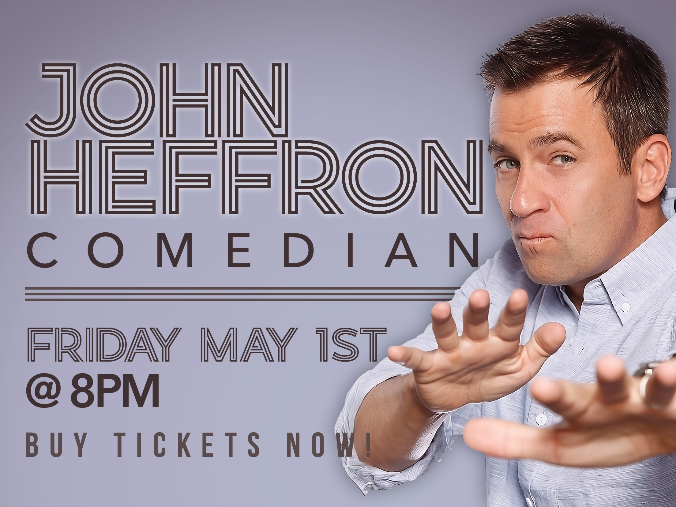 Energetic and accessible, acclaimed standup John Heffron shares an array of relatable experiences from childhood through life as a married father. He’s learned a thing or two about relationships with family, friends, and even himself along his journeys, gaining an astute, uniquely honest perspective widely praised among his comedy peers. Audiences of all ages relate to his enthusiastic, hard-won wisdom, recognizing how often the path to maturity is marked by universal triumphs and failures. Rather than mock differences, the Detroit native aims to engage, connect, and enlighten.