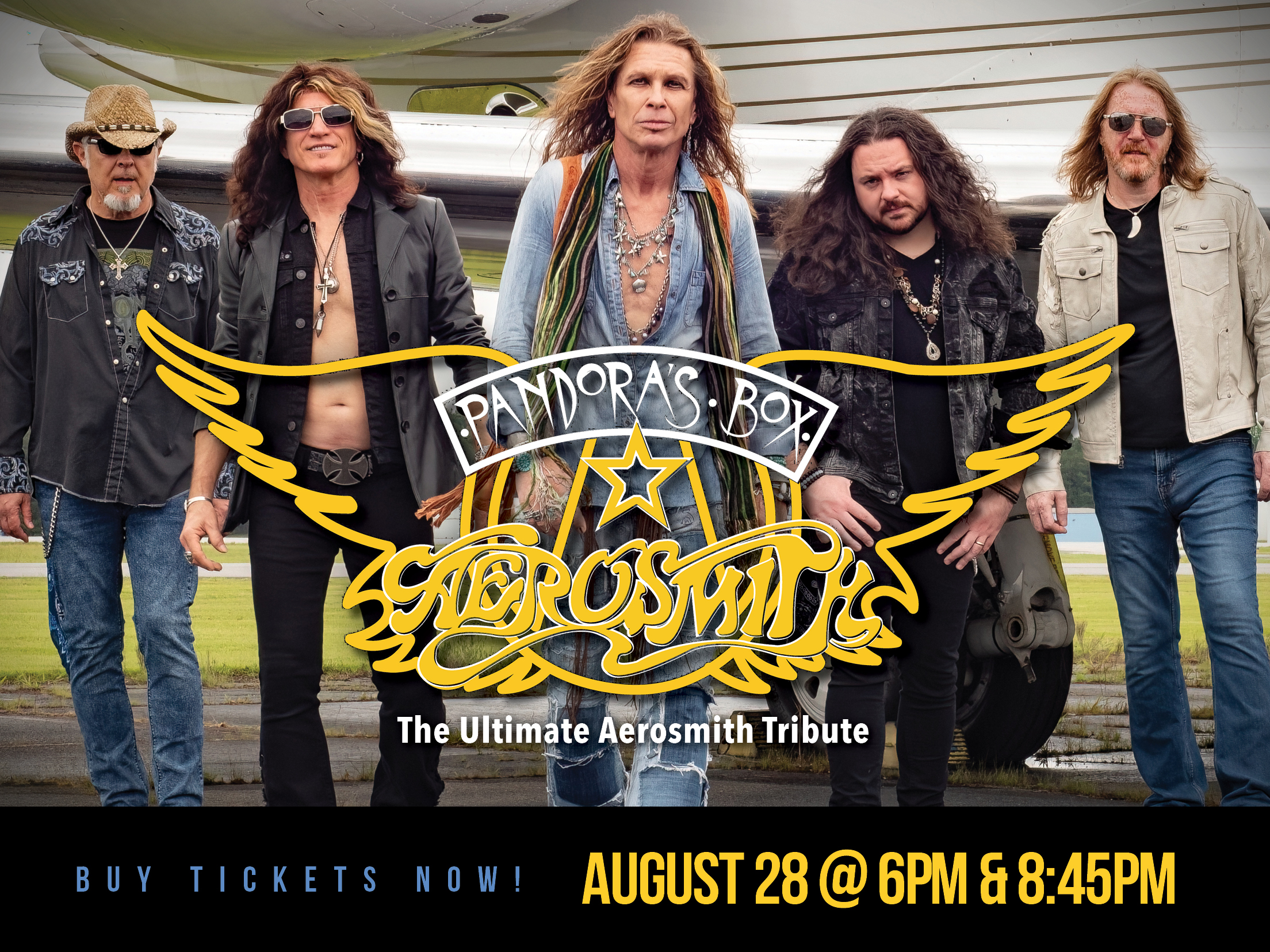 The music of Aerosmith has all the ingredients to make any event successful & one to remember. It brings back memories with their catchy hooks & sing-a-long melodies. With 50 years of multi-platinum selling mega hits starting with vinyl album -era releases like "Dream On" (1973) , "Sweet Emotion" & "Walk This Way" (1975), to MTV era- cassette tape & Cd releases of "Dude Looks Like A Lady" ,"Rag Doll", & "Love In An Elevator" (late 80's).The band penned a string of more chartbusters in the 90's and pinnacled with their first number 1 single ever in 1998 with "I Don't Want To Miss A Thing". You don't have to wait very long to hear one of your favorite songs at a Pandora's Box show!